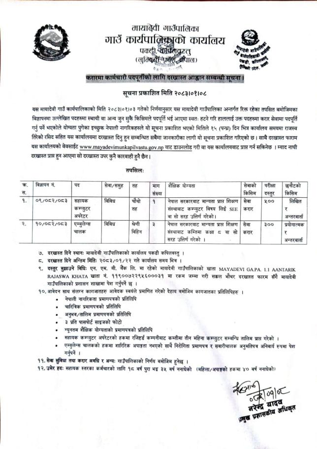 सेवा करारमा कर्मचारी पदपूर्तीको लागि दरखास्त आह्वन सम्बन्धी सूचना ।