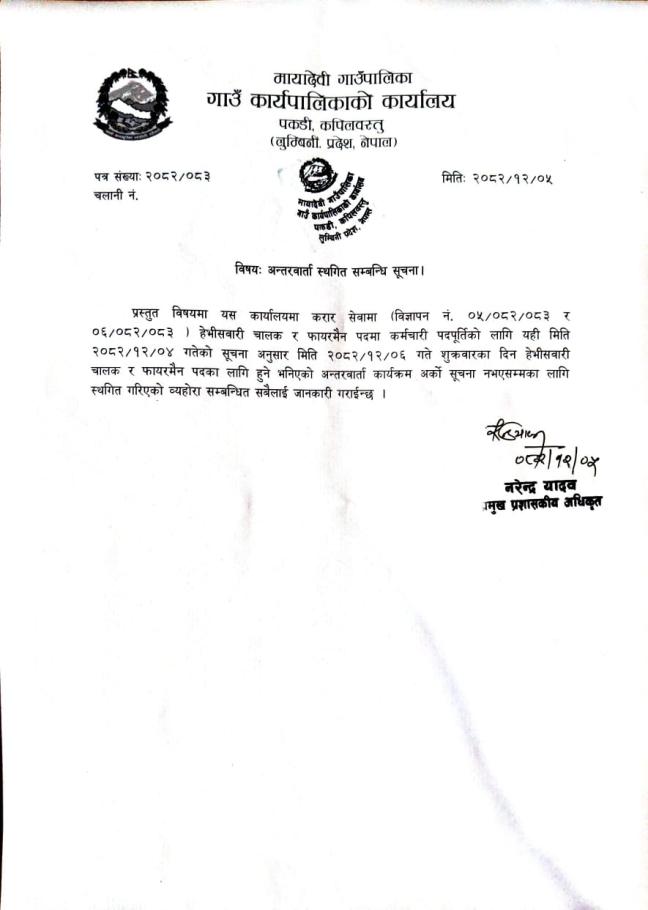 अन्तरवार्ता स्थगित सम्बन्धि सूचना ।