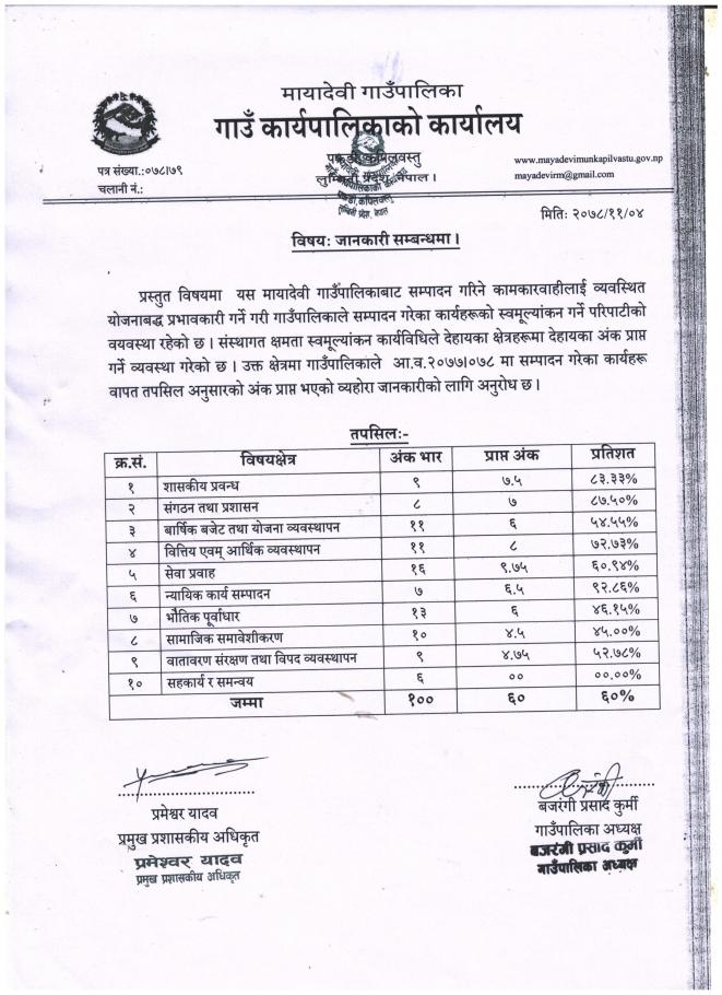 अा.व.२०७८/०७९ मा गरिएको संस्थागत क्षमता स्वमूल्यांकन सम्बन्धी नतिजा सार्वजनिक गरिएको सम्बन्धमा ।