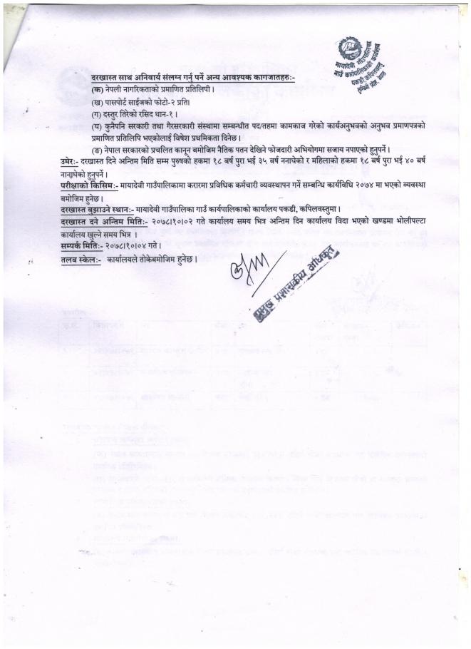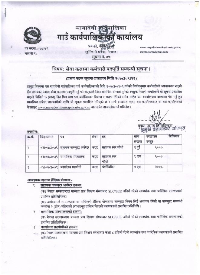 सेवा करारमा कर्मचारी अवश्यकता सम्बन्धी सूचना ।